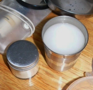 Last time I went away I took my home-made lotions in metal pots. While they are fine in the handbag they are not so good for hard core backpacking. My pack gets flung on and off jolty old buses and the metal bottles crumpled and creased under the strain. Then the lids could not be removed or started to leak.