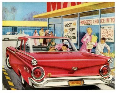 It seems that bulk-buy convenience, supermarket shopping makes you buy too much. Once in those huge malls of food, the desire to get the weekly shop done all at once is irresistible. After all that’s what you drove all this way for. And judging by the huge trollies filled to overflowing at the checkout, it leads to a kind of stockpiling frenzy.